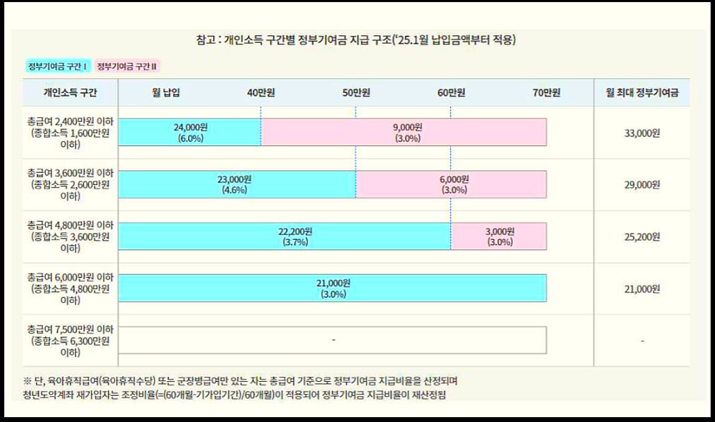 : 납입액에 비례해 소득구간별 정부 기여금 지원