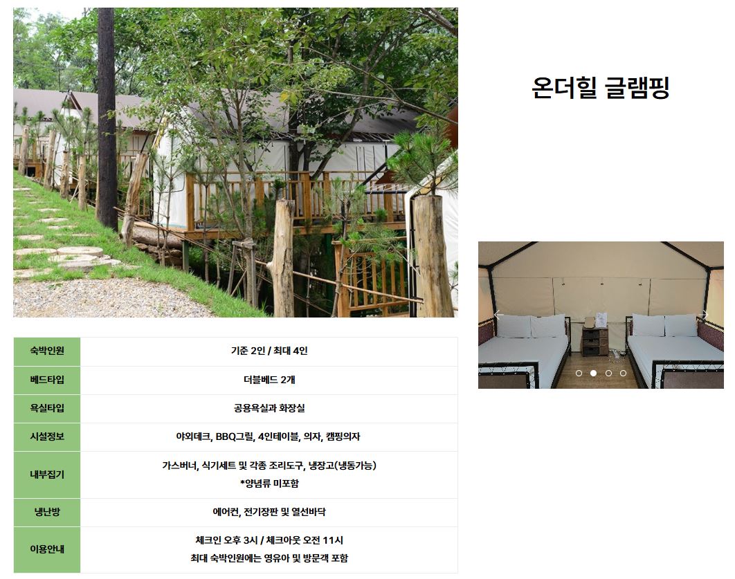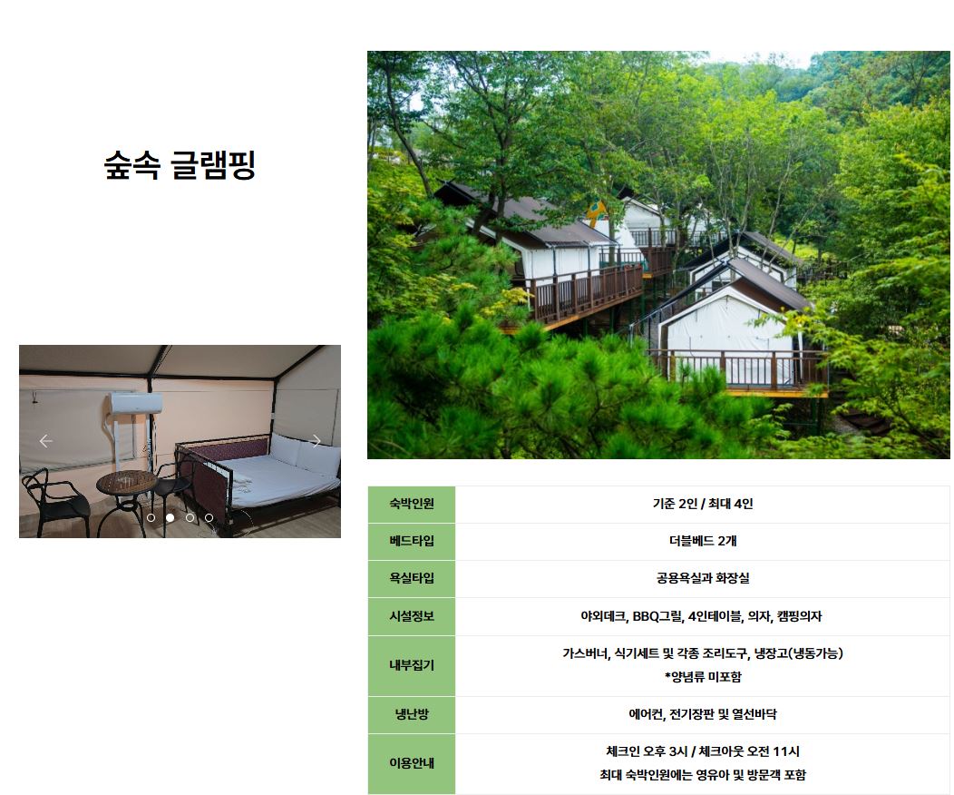 캠핑장 바로가기를 통해 홈페이지에서 예약이 가능 합니다.